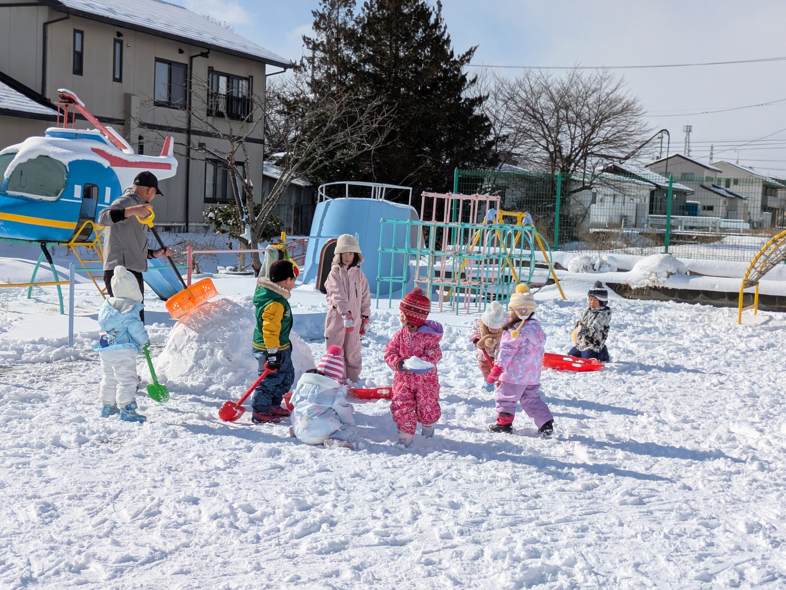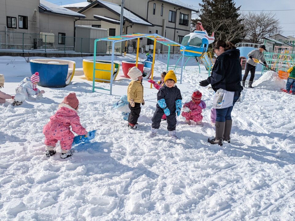 雪が積もっても、なかなか雪遊びができませんでしたが、今日は雪遊びを楽しみました☺